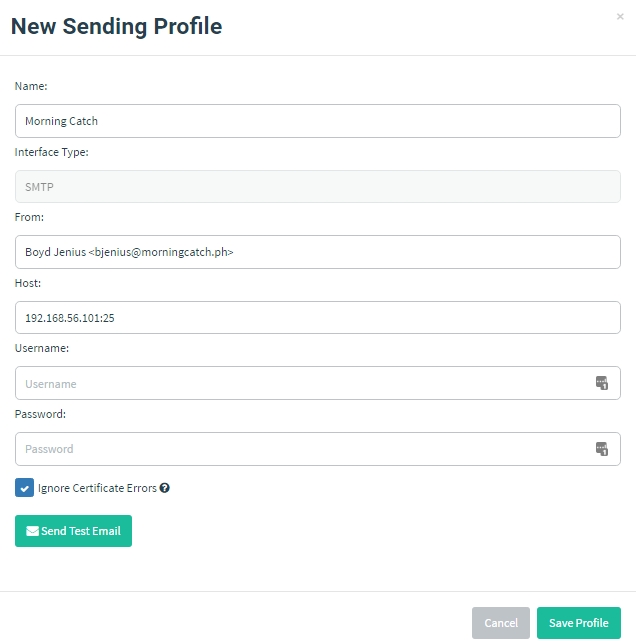 Remember: Always specify the port number when configuring a sending profile! Use the host:port format when specifying the Host.
