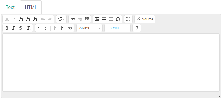 By clicking the "HTML" tab, we will see the editor we can use to create our HTML content: